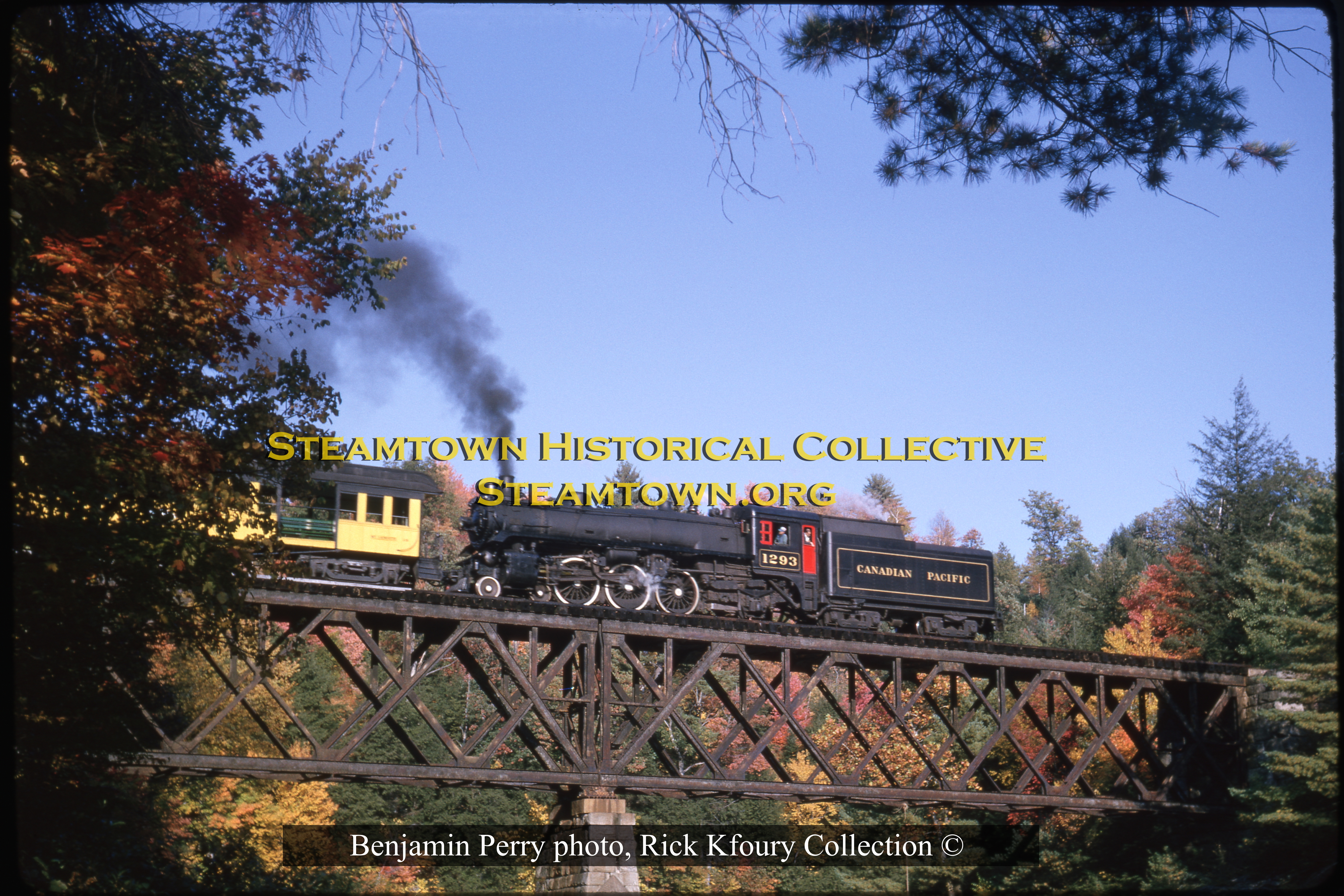 Despite the rocky start, the rest of 1964 was actually quite positive. Work progressed on creating the Green Mountain Railroad to restore freight service to the area. Tensions with the B&M cooled and they allowed Blount’s equipment back and forth between Riverside and North Walpole. The non-profit status of the Steamtown Foundation allowed new pieces to trickle in to the collection, including a Union Pacific 4-8-8-4 “Big Boy” #4012, which arrived via the B&M Cheshire Branch on September 23. Canadian Pacific G5 4-6-2 #1293, purchased by Blount the previous winter, was fired up in September and operated until the end of the season, allowing for the first time two active excursion steam locomotives on the MS&N. Over 60,000 visitors attended the two attractions in 1964, with approximately 37,000 riding the trains in Vermont and 23,000 visiting Steamtown, U.S.A. in North Walpole. Perhaps best of all was the fact that after several misfires, Blount and the Foundation had finally secured a permanent place to operate and to begin to construct Steamtown, U.S.A.